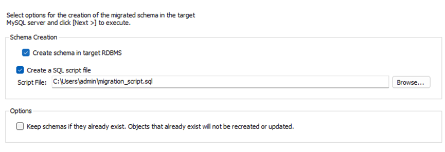 选择Schema创建,需要选择Create a SQL script,后面需要手工编辑view和routine的创建脚本。