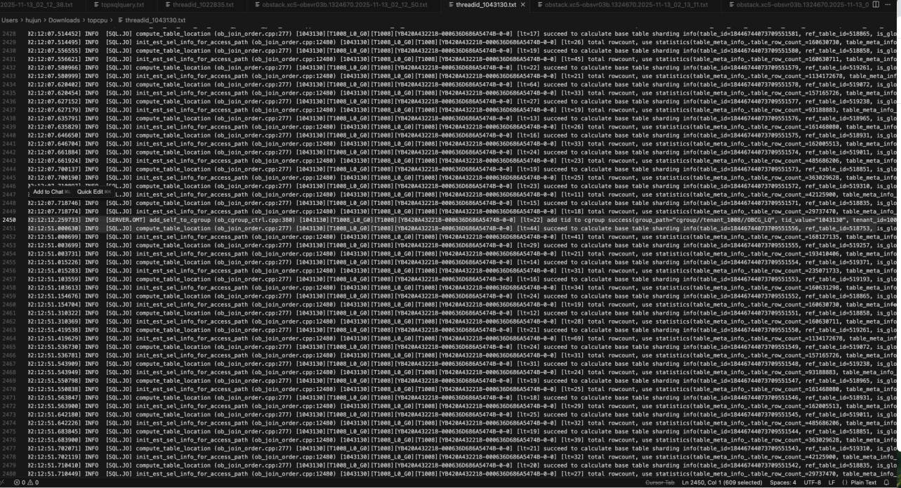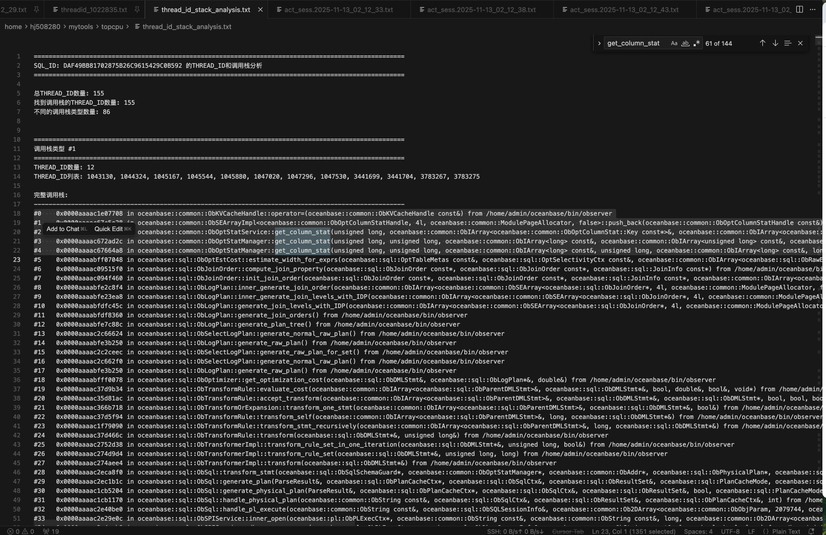 挑选同一个线程号1043130,obstack.xc5-obsvr03b.1324670.2025-11-13_02_12_29.txt和obstack.xc5-obsvr03b.1324670.2025-11-13_02_12_50.txt两个文件相差了12秒,但是这个线程号还是相同的方法调用栈,当然这个线程号有去看好几个table_id