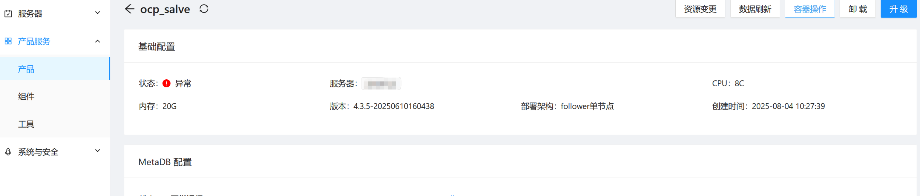 1.点击’卸载’,卸载掉出现异常的备OCP。