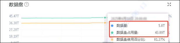 查看磁盘使用率:确认当前数据占用空间为2T,而磁盘使用为14T