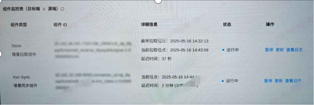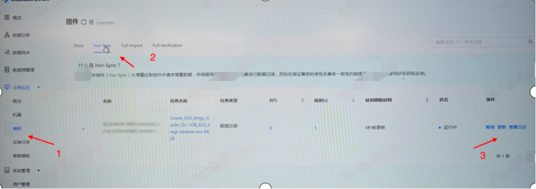3、打开OMS运维管理界面,依次进入“组件”→找到【Incr-Sync】组件→点击“更新”。