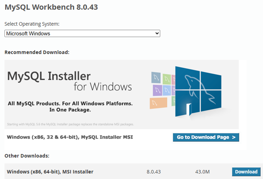 MySql Workbench官方下载页,:https://dev.mysql.com/downloads/workbench/