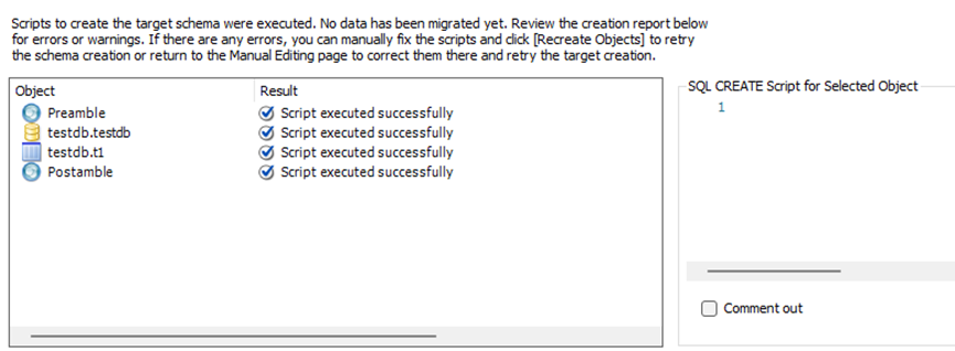 本示例迁移了1张表t1,2行数据,一个索引t1_idx。