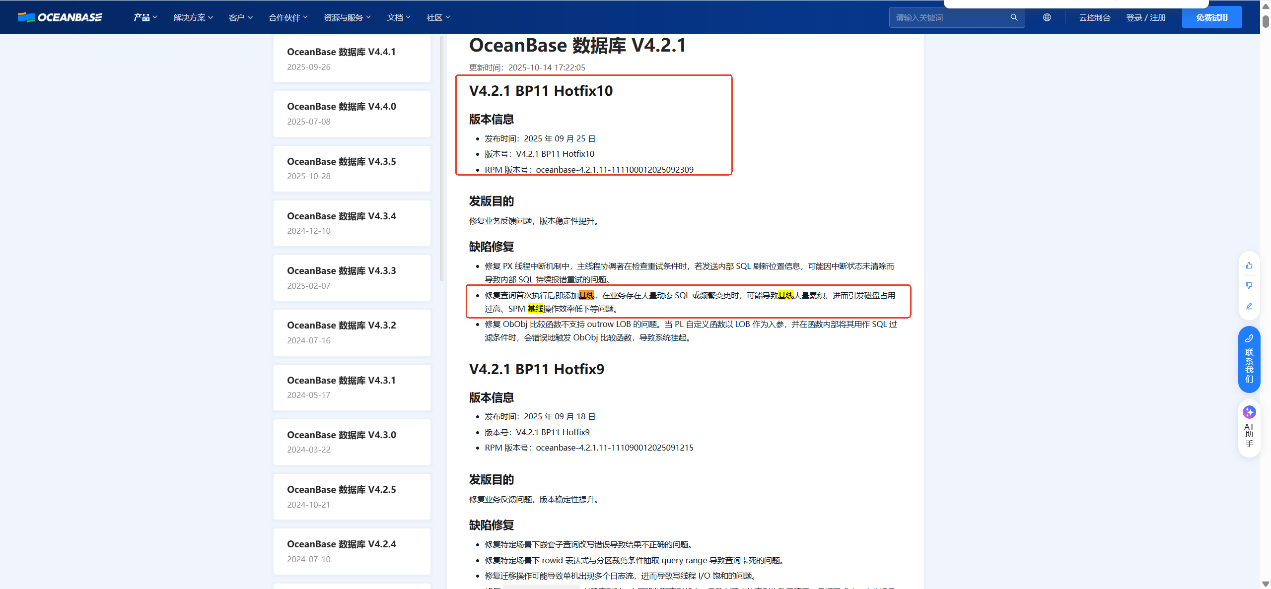 在 OceanBase 数据库中,对于开启 SPM(SQL Plan Management)功能的租户,随着业务变更、动态查询等原因可能保留了大量已经不再使用的基线,这些基线的数量会随着时间积累而增长。 在某些低版本中 OceanBase 不会自动清理这些无用基线,随着时间推移出现磁盘水位飙高、内部sql查询基线表导致io飙高等衍生问题。