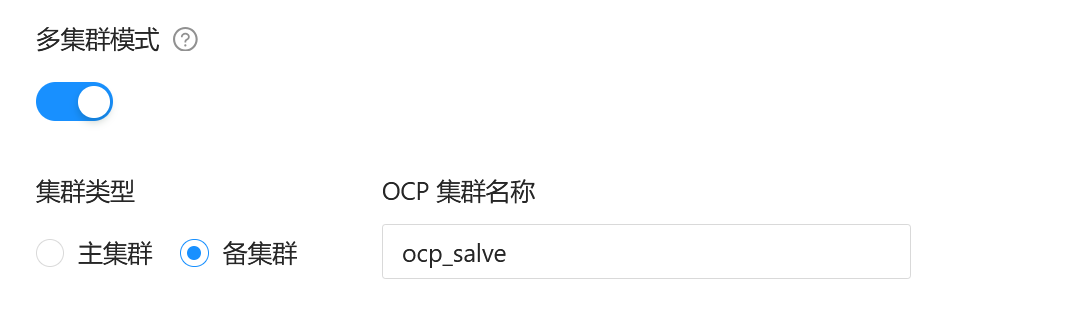 打开多集群模式,选择”备集群”,并填写ocp集群名称。
