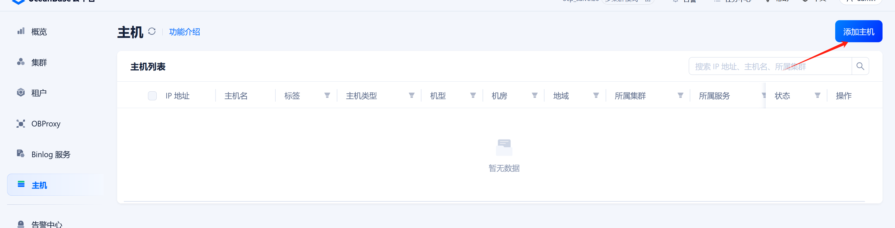 6.添加之前备OCP上的所有节点。点击OCP “主机”栏界面内右上角”添加主机”。