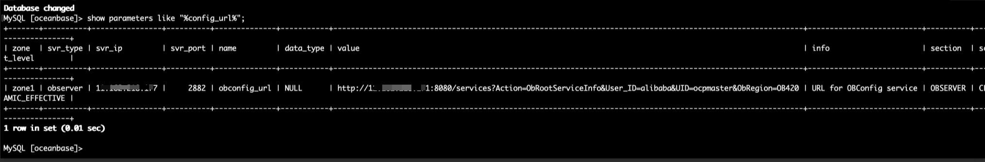 alter system set obconfig_url = 'http://$域名/services?Action=ObRootServiceInfo&User_ID=alibaba&UID=ocpmaster&ObRegion=OB420';