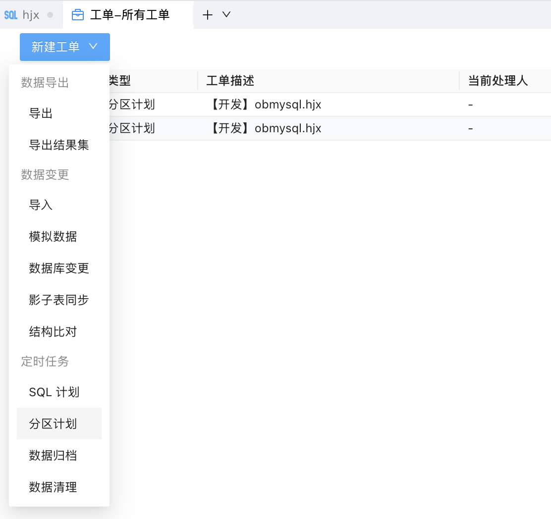 1.点击新建工单-分区计划,填写数据源并选择表。