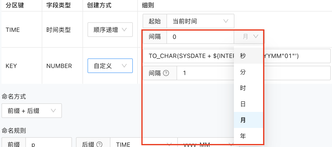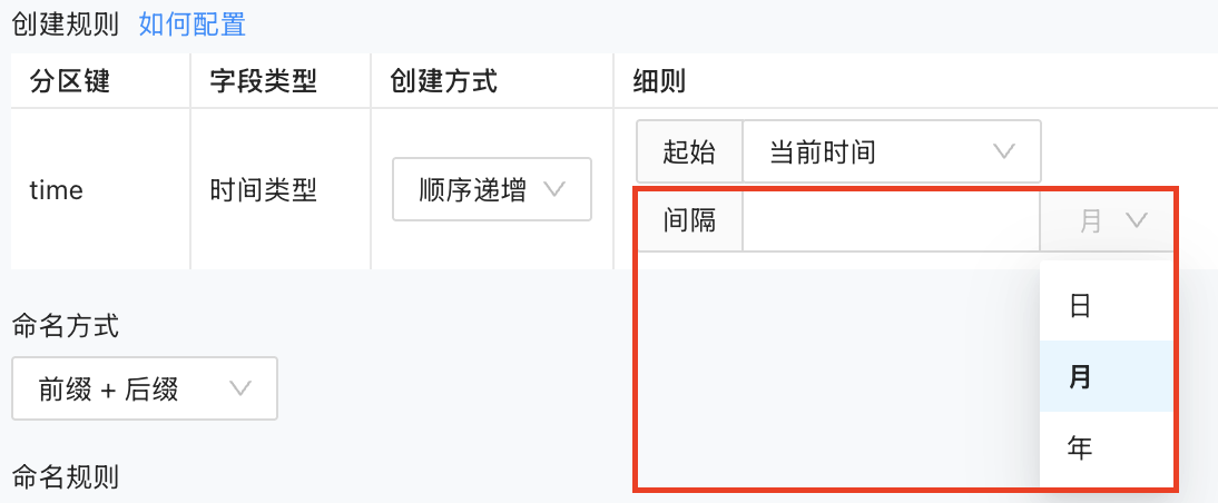 可以通过不同的策略生成分区名,分区名的生成和分区的内容相关联。目前有前缀加后缀和自定义两种分区名生成策略