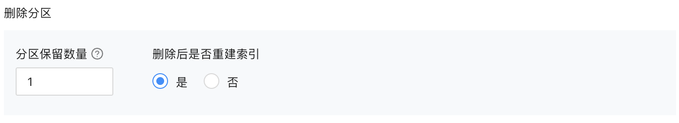 b. 删除策略中输入 分区保留数量 和 是否重建索引