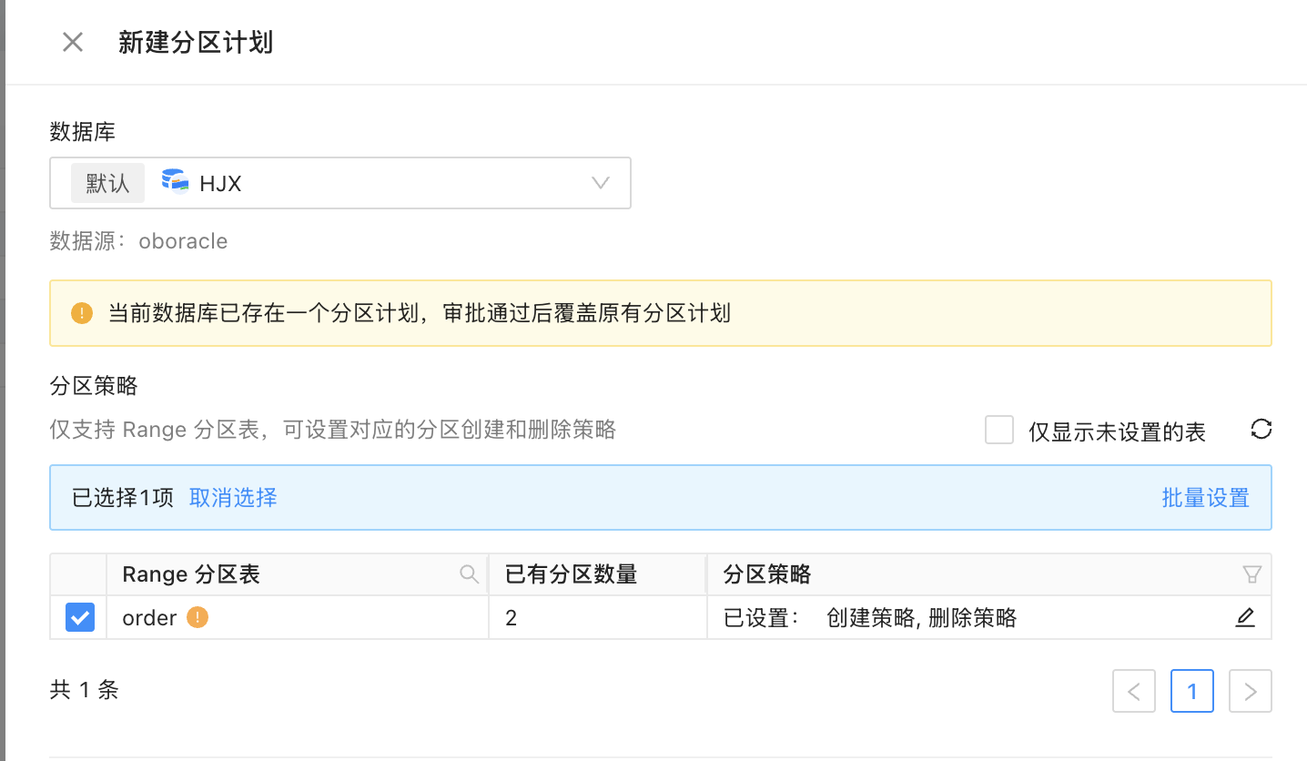 数据库已存在一个分区计划时,新创建的分区计划审批通过后覆盖原有分区计划。