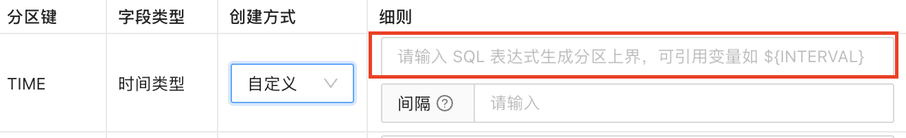 所有字段类型支持通过自定义 SQL 表达式创建分区策略。