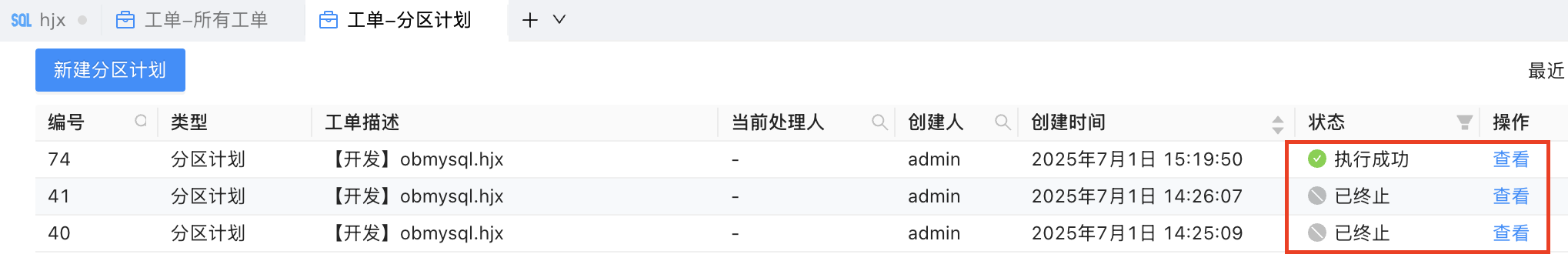 此处的截图不是我第一次做,order表已经有一个分区计划了,再次对其创建会提示,若审批通过则覆盖旧的计划