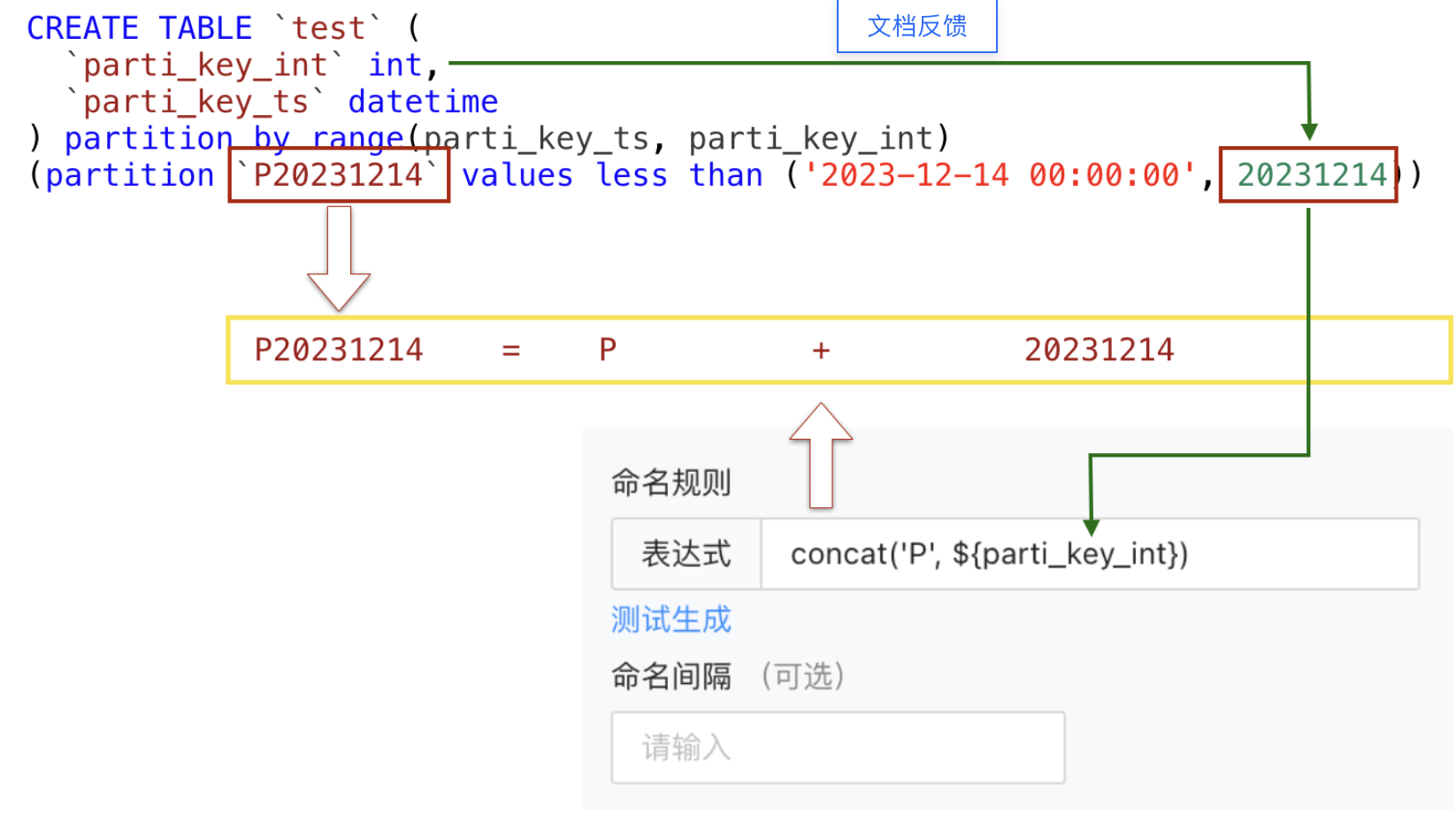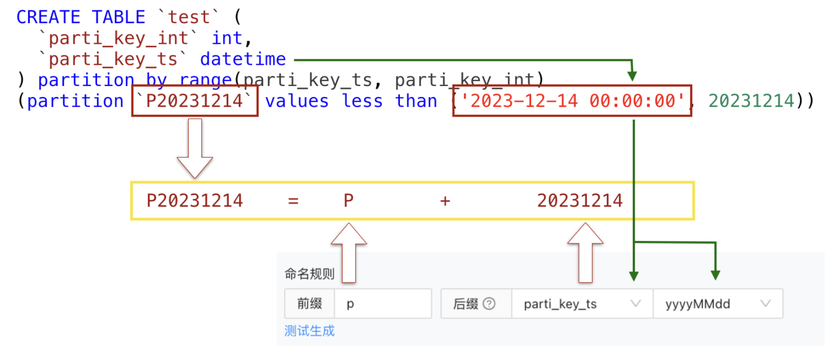 根据分区键的字段格式和业务创建分区的逻辑,到官网查看对应的SQL表达式填入即可。