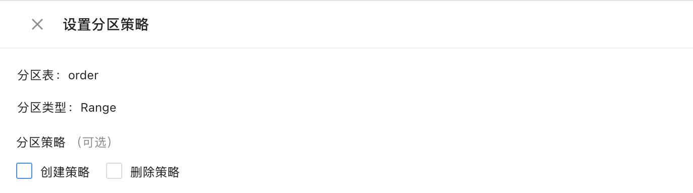 Range 分区表中的最后一个分区上限值为 MAXVALUE 时,数据库不允许新增分区,因此不支持通过 ODC 分区计划任务创建分区策略。