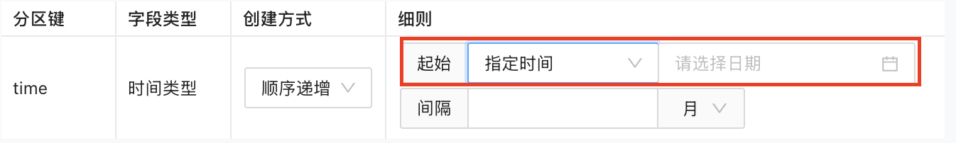 表按照指定的时间间隔和数据范围将数据划分到对应的分区。创建分区策略方式包括顺序递增和自定义。